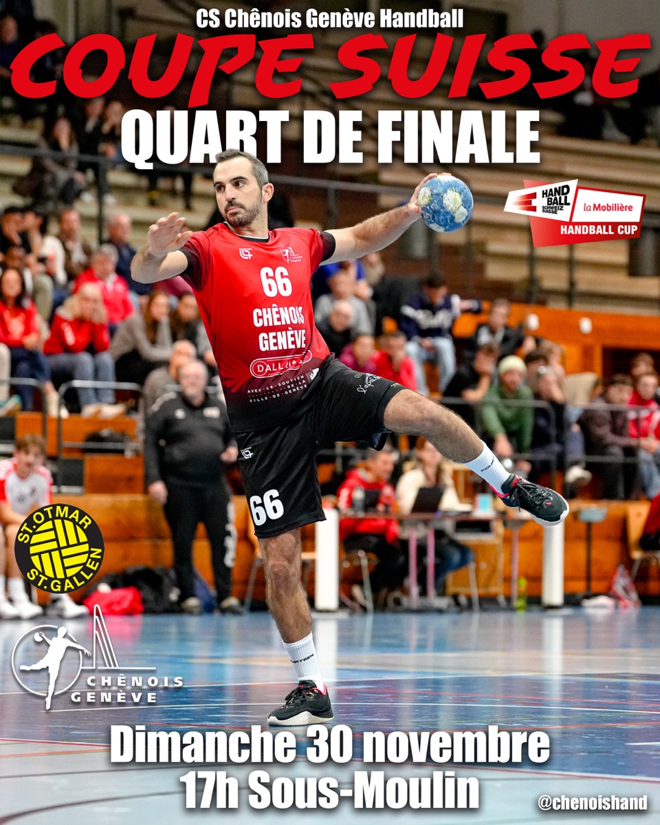 1/4 de final de Coupe Suisse + Ajouter à mon Agenda Google + iCal / Outlook export Date Nov 30 2025 Heure 17h00 - 19h30 Lieu Centre Sportif Sous-Moulin Rte de Sous-Moulin 39, 1226 Thônex Site Web http://cssm.ch Téléphone +41 22 305 00 00 Catégorie Famille Tous public Partagez cet événement Trois communes. Un centre sportif unique. Les horaires de l’administration : Du lundi au vendredi 08h00-12h00 et 14h00-17h00 Mail: info@cssm.ch Téléphone: 022 305 00 00 Adresse: Centre Sportif Sous-Moulin Route de Sous-Moulin, 39 1226 Thônex
